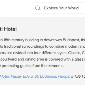Centrally located, in Budapest’s Jewish Quarter, Hotel Casati is housed in an 18th-century townhouse with a modern interior and contemporary style. Rooms are centered around four themes: Classic, Cool, Natural and Heaven, each with tasteful and stylish decorations. It’s worth noting that the hotel caters only to guests over the age of 14, and as...